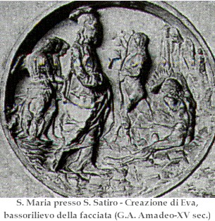 A conclusione del percorso invitiamo ad ammirare lesterno della zona absidale nellangolo tra le vie Speronari e Falcone (immagine dapertura): si nota lantico campanile romanico, eretto nellXI sec., la cui base è stata edificata anche con materiale di recupero detà romana. A fianco lelegante rivestimento rinascimentale del sacello di San Satiro con una ricca fascia decorativa con testine di bimbi in diverse espressioni.